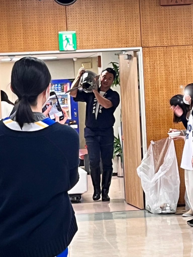 先日はA社様の社内イベントに呼んでいただきました! 大きな、まぐろの入場でーす♪( ´θ`)ノ 歓声が会場内響き渡っていましたよ!可愛いちびっこチャンは怖がっていましたが 時間が経つにつれて慣れてくれて、沢山まぐろを 食べてくれました(^ω^) 中落ちジャンケンもして楽しい解体ショーでした! 見てください!!赤身が綺麗でモッチモチの 生きはだまぐろですよー🎶 今回は、お刺身でご提供させていただきました。 今回の様に、社内イベントなどにも対応しております!! まぐろ解体ショーお考えの方は、是非!! さんりつ水産にご相談ください!!