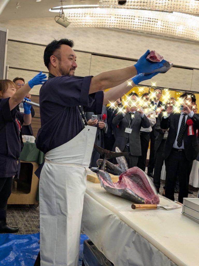 先日は、企業様の懇親会に呼んでいただけました。 今回は、長崎県産生本まぐろ36キロを 準備させて頂きました。 今回のまぐろ解体ショーの持ち時間は、 進行の都合上短かったですが、時間内に しっかりお客様に喜んでいたでけ 喜びの声もその場で聞かせていただいたりで とても嬉しかったです🎶今回はお寿司でのご提供と 懇親会のお食事がビュッフェでしたので 大皿での刺盛りでのご提供でした。 今回の様に、企業様のイベント等での まぐろ解体ショーなどお考えの幹事様! どんな事でも構いませんので 是非!! さんりつ水産にご相談お問い合わせください。