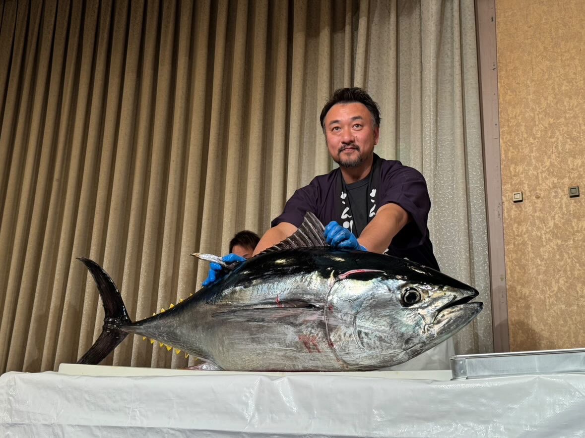 皆様こんにちは! 先日は、T社様の社内イベントに呼んでいただきました。 今回用意させていただいたのは 長崎県産生本まぐろ34キロ握り 5貫で提供しました。