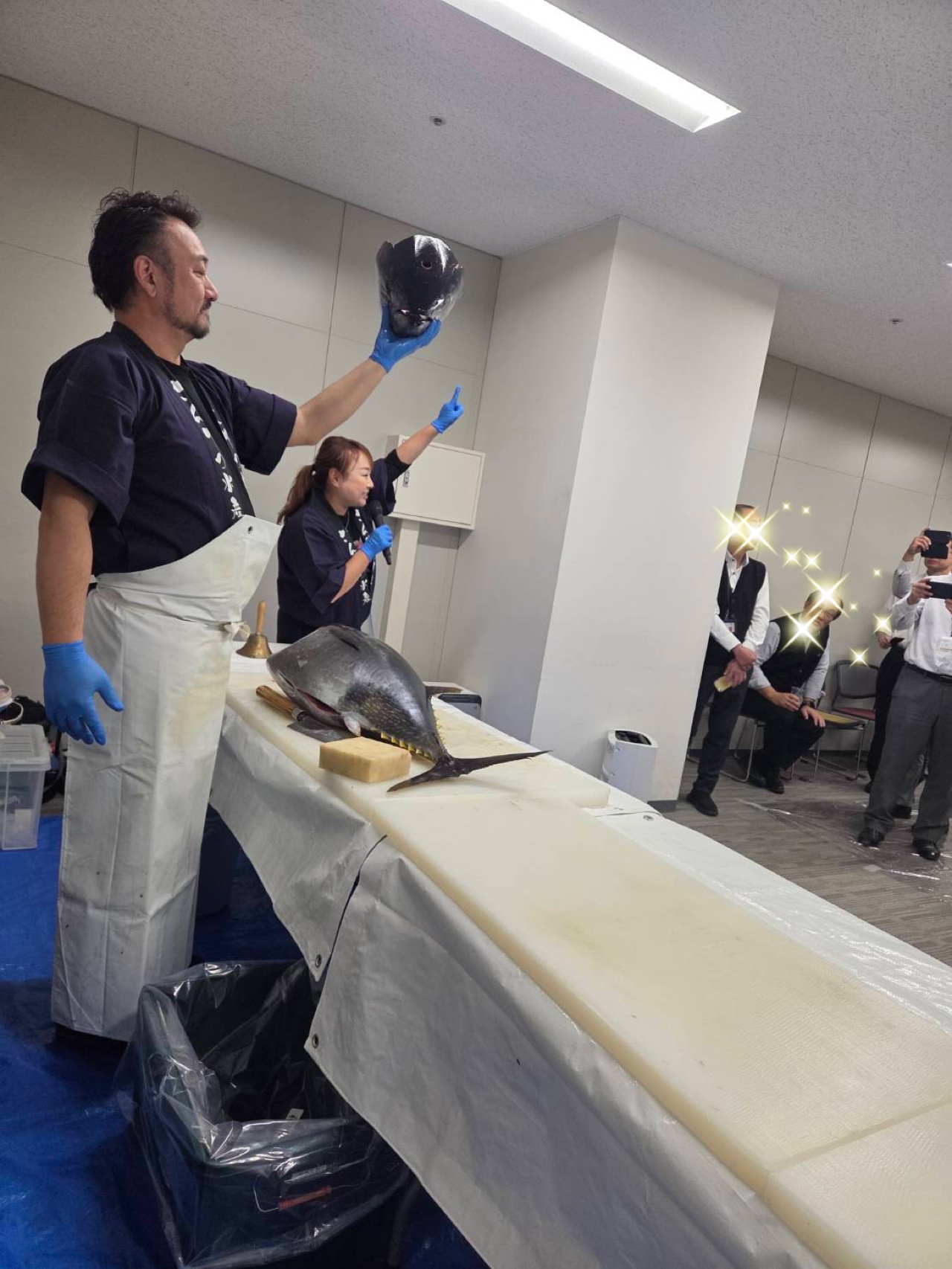 当初80名様でのご予約でしたが半分になってしまい 余ってしまうと思いましたが! なーーーーーんと!!!!!!!!! 40名様で!!!!! 34キロ!!! 余す事なく、完食していたでけました♪( ´θ`)ノ もちろん、希少部位の、頭肉、ほほ肉、中落ちもです!! そして!今回、解体ショー中に撮れた写真が1枚しかないのです。。 なぜな!!皆様の召し上がるスピードが早く、お待たせ しないようスタッフ一同大急ぎで準備しました。 今回の様に、社内イベントをご検討されている 幹事様!ぜひ!さんりつ水産にご相談ください!