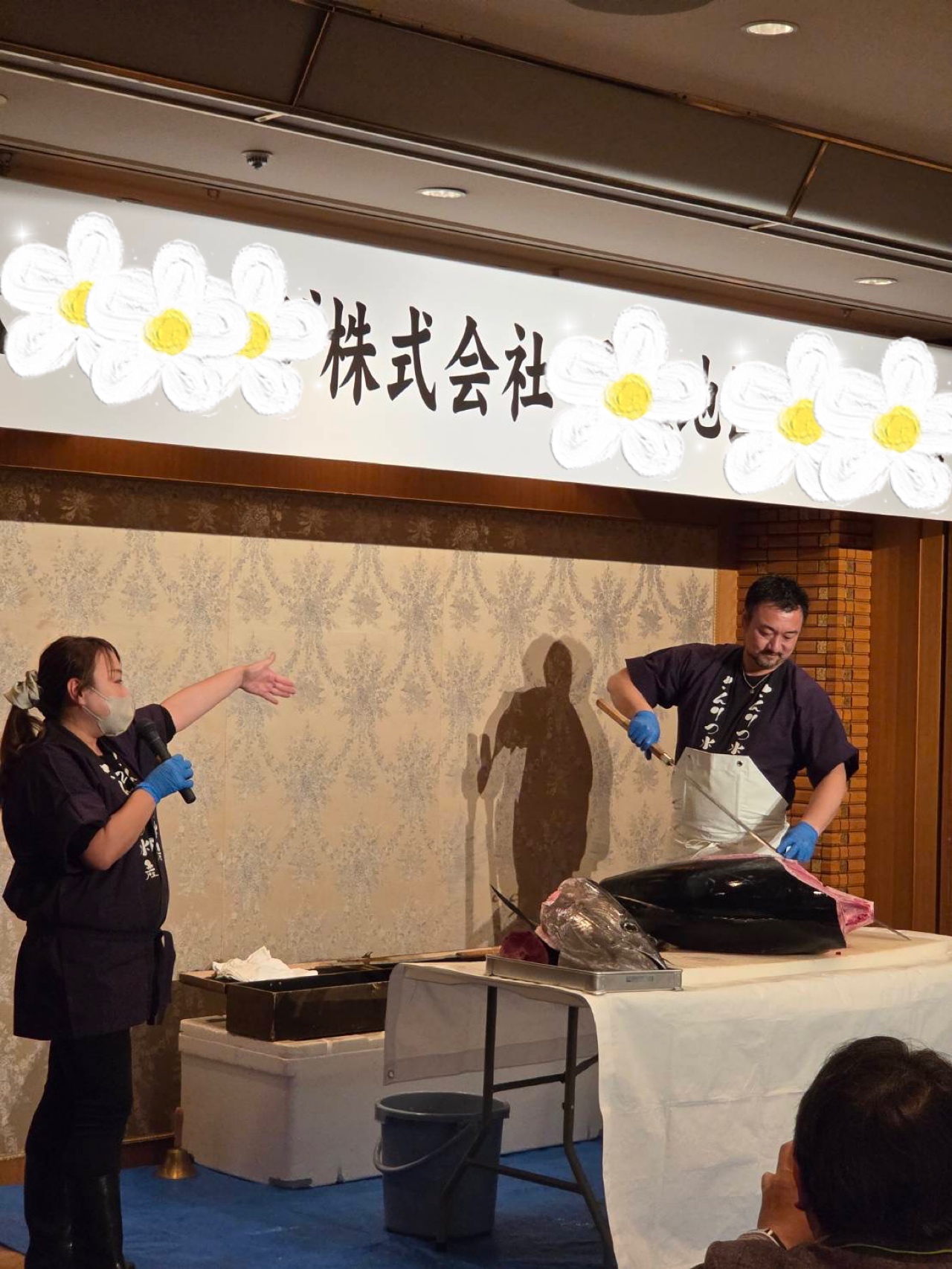 先日は、D社様の懇親会に呼んでいただきました。 今回準備したまぐろは 長崎県産生本まぐろ55キロ 水揚げされてから一度も冷凍されていない 生の本まぐろです 今回は約100名様のご利用でした。 お寿司とお刺身でのご提供。 年配の方も多くいらっしゃいましたが 皆様何度もおかわりをされていました。