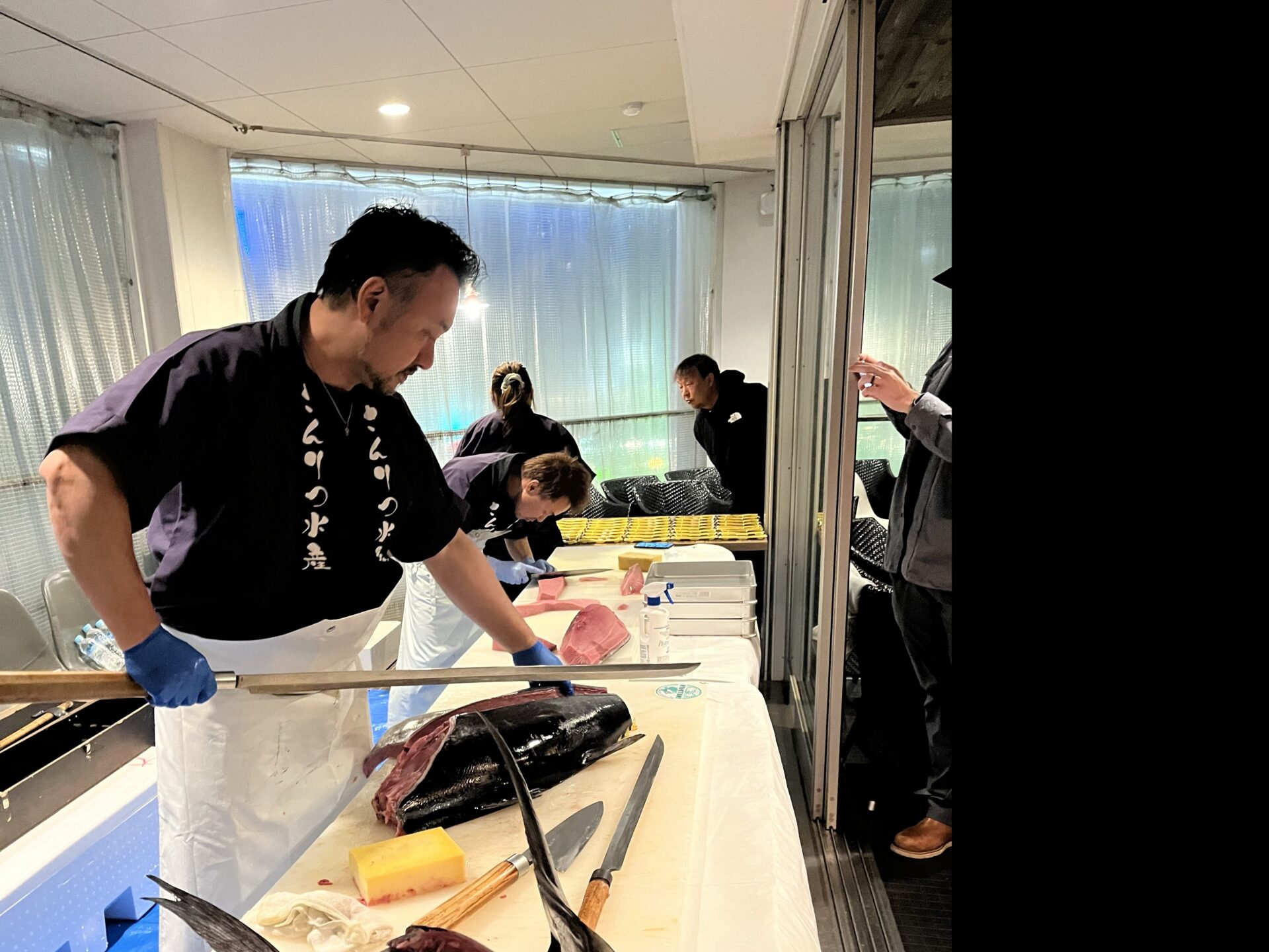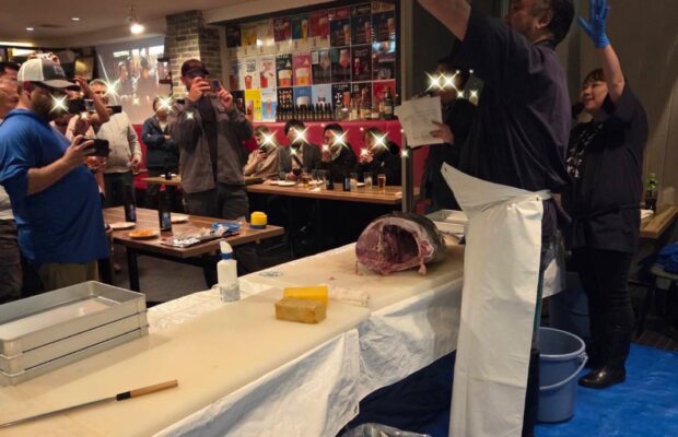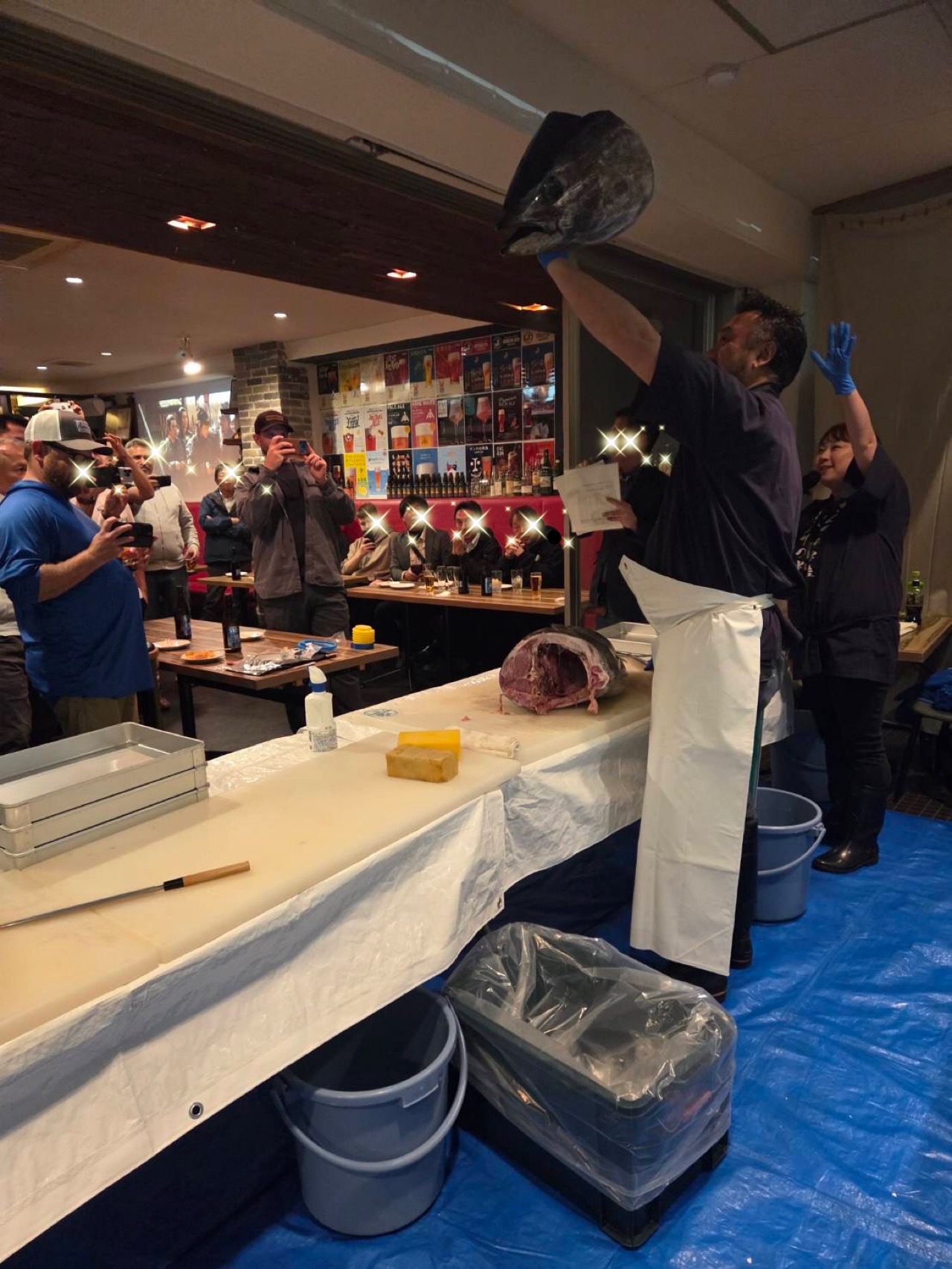 長崎県産生本まぐろ32キロ お刺身でのご提供でした。 サプライズだった為、少し早めに会場入りしました。 サプライズも大成功で、会場内はテンションMAX! お店は貸切だった為、お店のスタッフさんも喜んで まぐろ解体ショーをみていらっしゃいました。